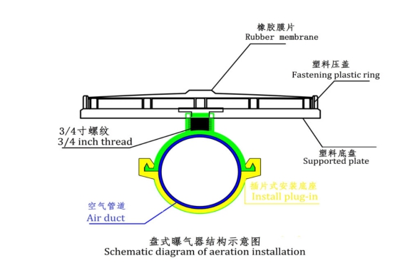 The Membrane fine bubble disc diffusers have been manufactured for more than 15 years in the aeration of industrial wastewater, municipal sewage, domestic septic tank, food process like fermentation, fish farm or shrimp farm aeration.