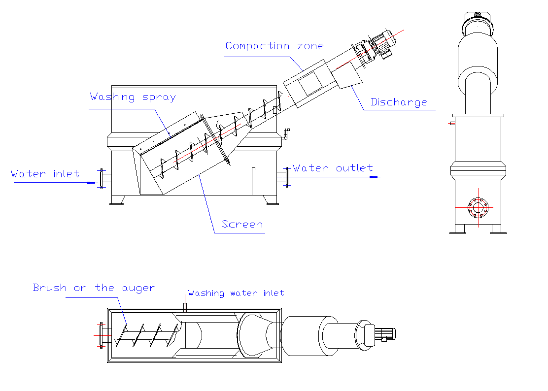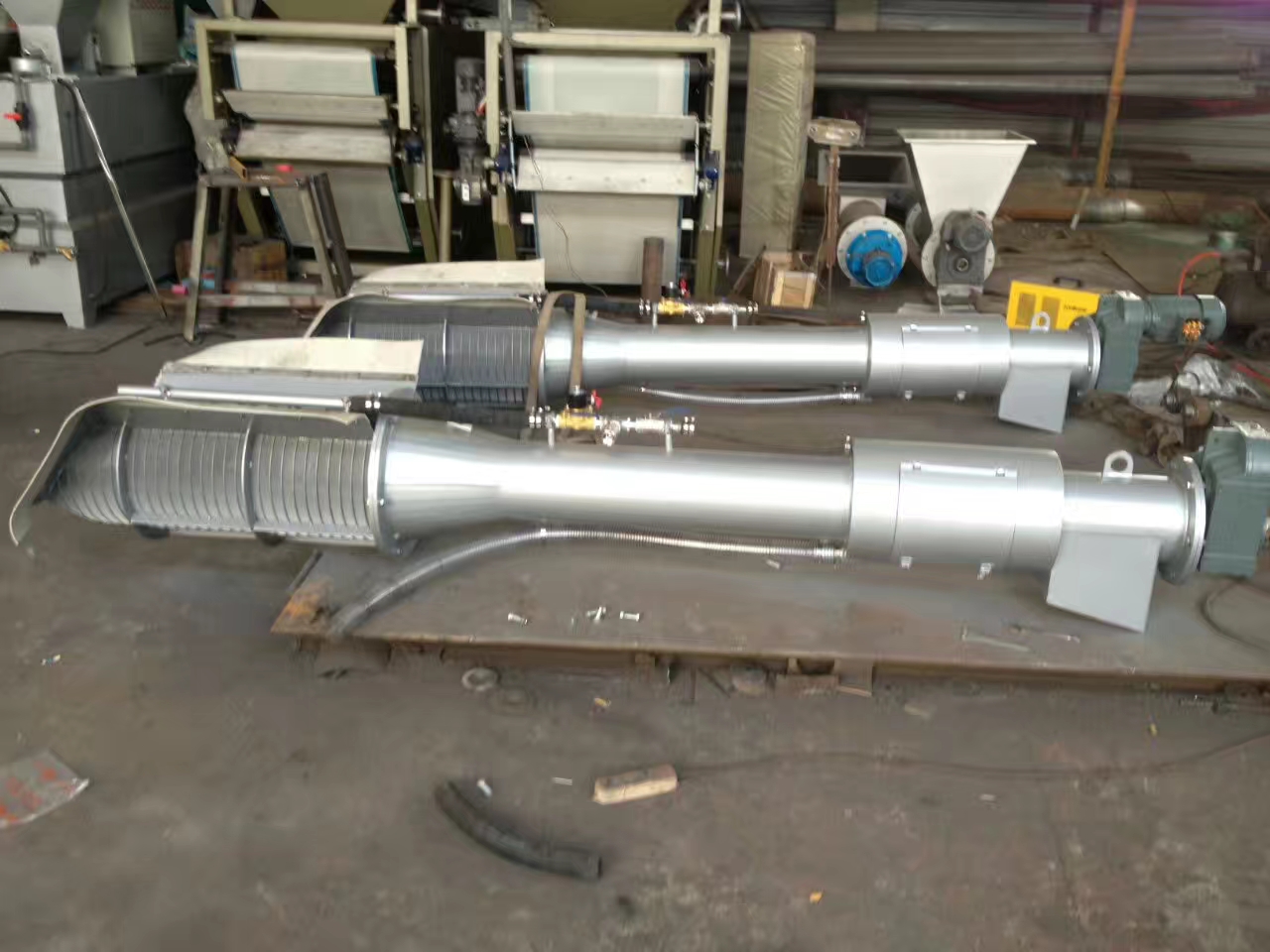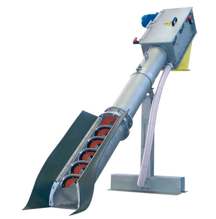 Screw screen effectively separate and convey solids in wastewater and septage applications, installed in-channel or in a self-contained stainless steel tank. Particles are captured on the fine screen basket. As the solids are intensively washed by the high impact spray nozzles, they are swept by the screw auger and transported up the auger. The solids are then discharged at a convenient elevation into a bin, bag, conveyor or separate compactor.